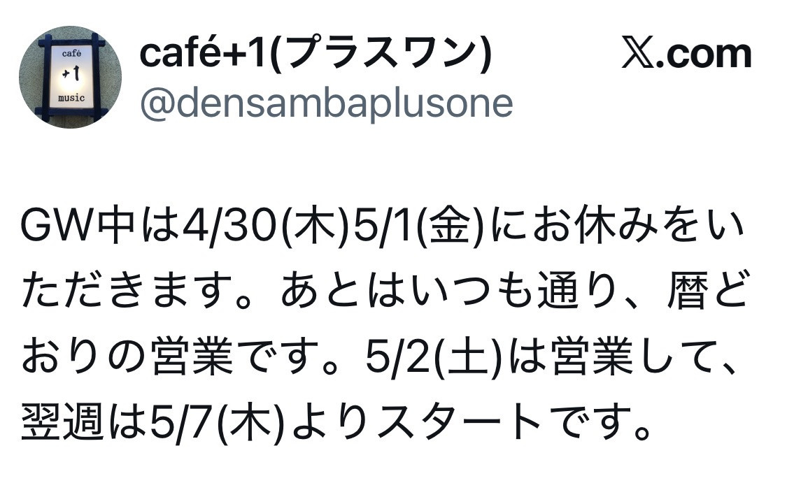 X(旧Twitter)でのお店情報、休日のお知らせ